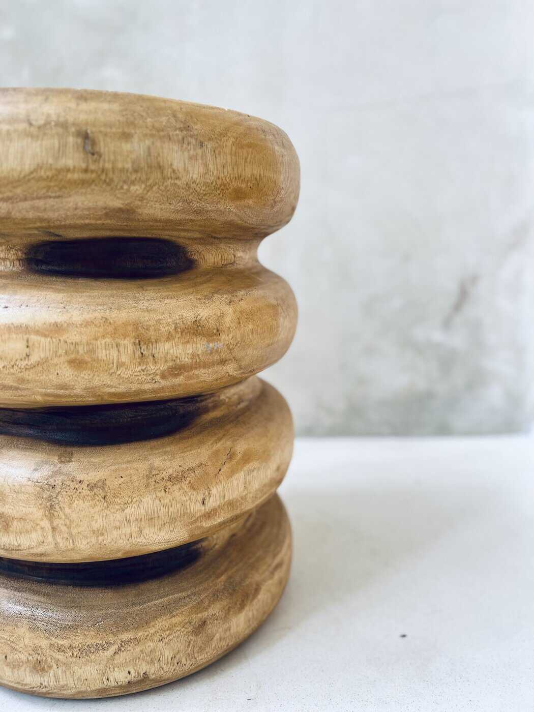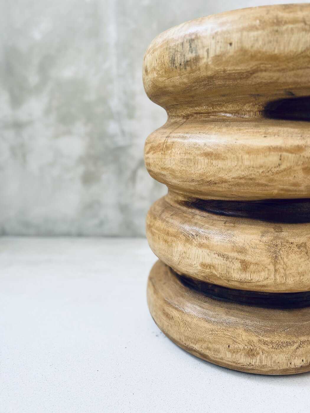 Stolik pomocniczy wykonany z drewna suar w formie pięńka jest fascynującą kreacją, wytworzoną przez zdolnych artystów z Bali. Każda sztuka jest niepowtarzalna, dzięki ręcznej pracy lokalnych rzemieślników, co nadaje jej osobisty charakter. Idealny jako dodatek do salonu, sypialni, czy nawet łazienki.
