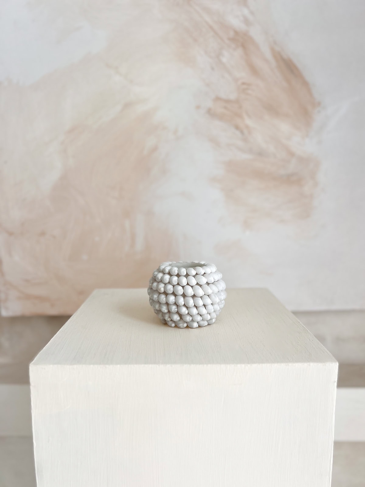 Delikatny i nastrojowy — świecznik ozdobny AURA to ręcznie wykonana dekoracja z naturalnych muszelek, stworzona z myślą o drobnych detalach, które robią klimat. Jego okrągła forma otula światło tealighta, tworząc miękką poświatę i przytulną atmosferę.