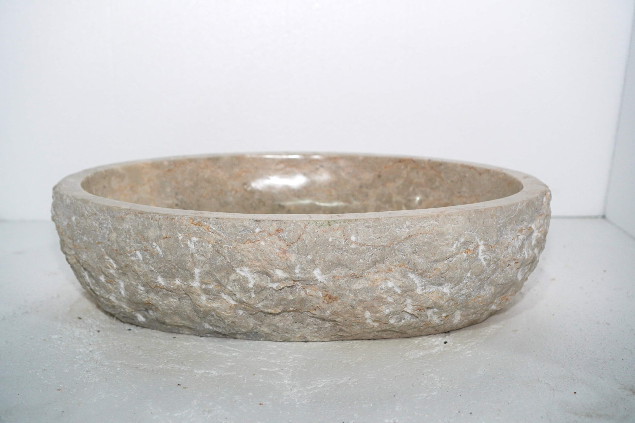 Ta umywalka z kamienia, wykonana z marmuru, jest ręcznie wykuwana przez lokalnych rzemieślników na Bali. Każdy egzemplarz jest niepowtarzalny i posiada indywidualny numer, co gwarantuje, że kupujący otrzymuje dokładnie tę umywalkę kamienną, która widoczna jest na zdjęciu.