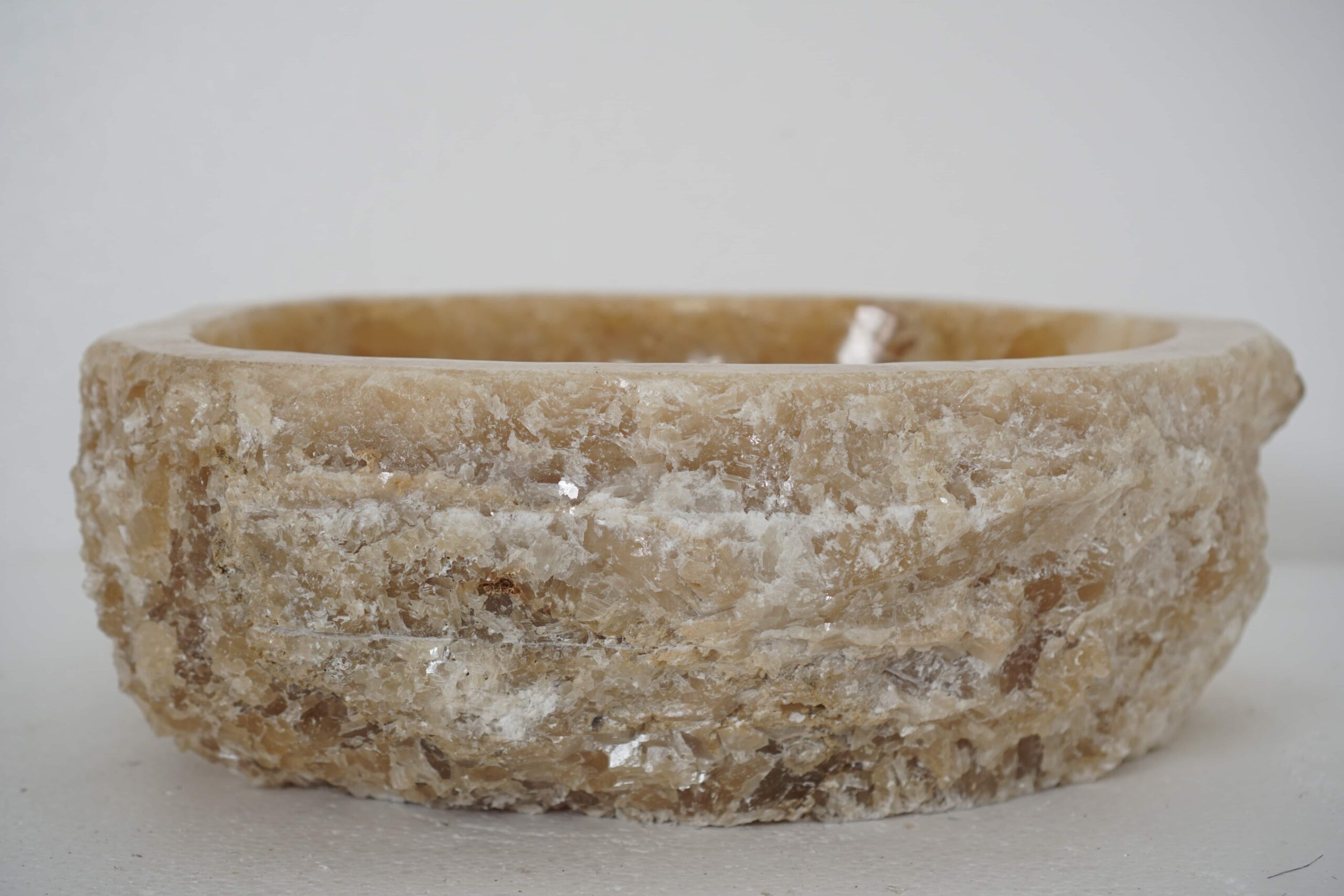 Stwórz unikalną przestrzeń, korzystając z tej umywalki onyksowej, wykonanej z kamienia naturalnego. Jej interesująca powierzchnia tworzy efekt piękna i elegancji, a ręcznie wykute detale dodają jej wyjątkowego charakteru. Ta piękna umywalka z kamienia naturalnego jest tworzona ręcznie przez lokalnych rzemieślników z Bali.