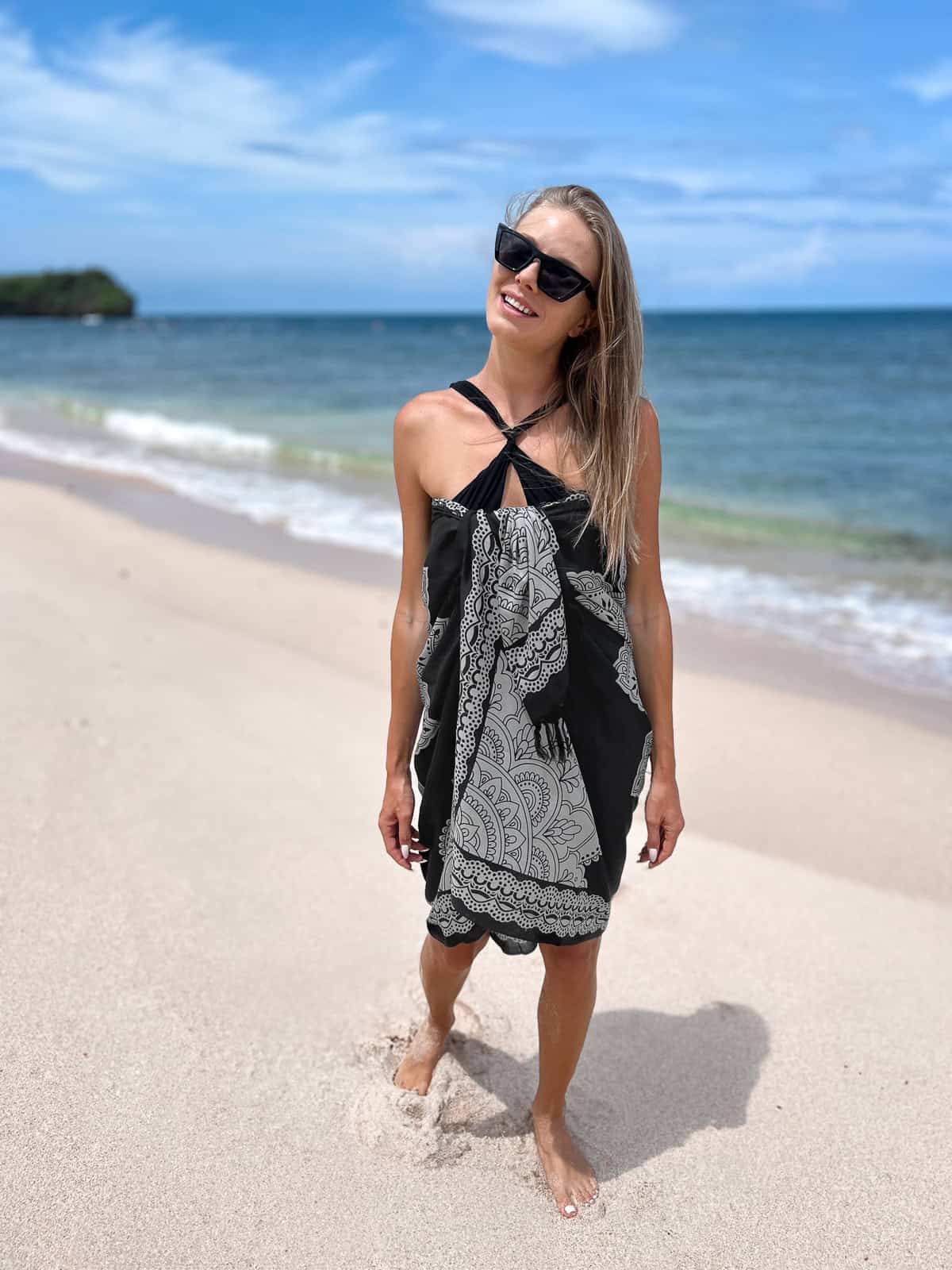 Pareo Plażowe Chusta LOTUS CZARNE to idealny dodatek dla tych, którzy cenią sobie elegancję i wszechstronność w plażowych stylizacjach. Czarna chusta z subtelnym wzorem lotosu może być noszona jako pareo, tunika, czy nawet elegancka narzutka na wieczorne wyjścia. Wykonana z lekkiego, przewiewnego materiału, zapewnia komfort i ochronę przed słońcem, a jednocześnie dodaje stylowego akcentu do każdego letniego outfitu.