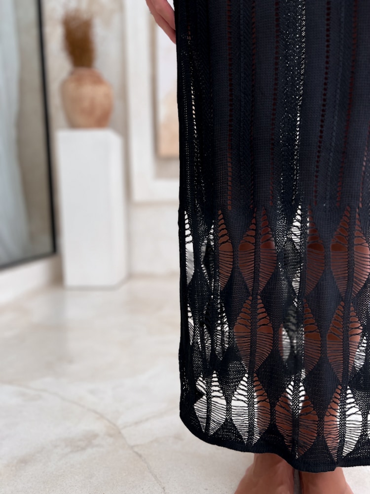 Opis: Długa Sukienka Pleciona TAMU Czarna